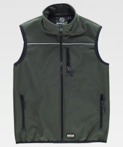 Chaleco soft-shell con remate de vivo en los canesús. Cuello alto y cierre de cremallera de nylon. Un bolso de pecho y dos laterales interiores con cremallera de nylon. Un bolso de plastón con cierre de cremallera en el interior. Vivos reflectantes y cremalleras combinadas. Ribeteado con bies elástico a contraste. Tejido corta vientos, repelente al agua y resistente al desgarro con membrana interior transpirable y aislante e interior de alta capacidad térmica.